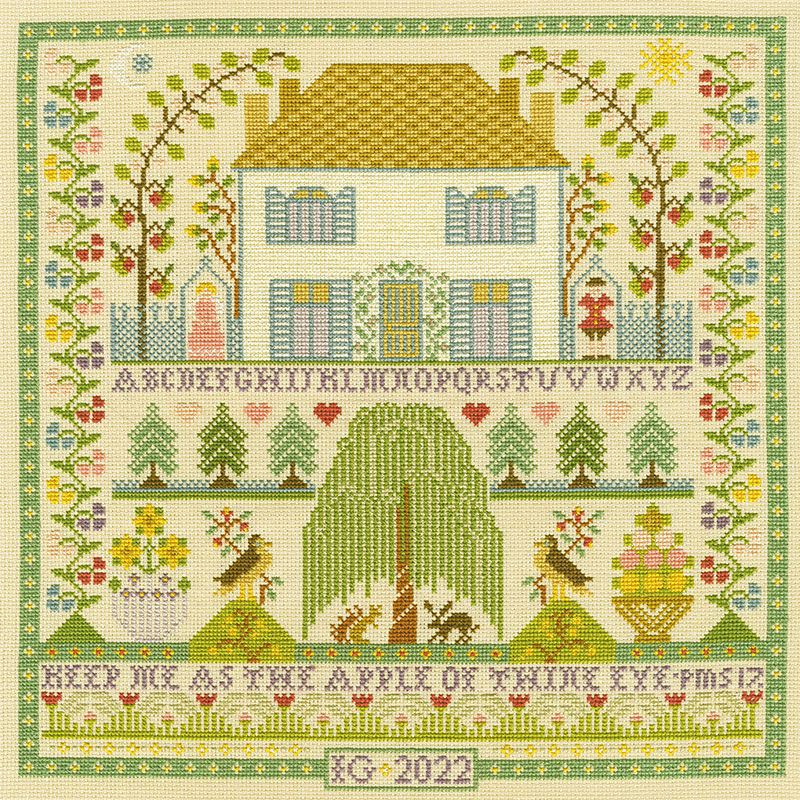 【キット作り方つき】家や庭、動物たちをモチーフにした クロスステッチサンプラーです。日付とイニシャルを入れて、新築祝いなどの贈り物にも。上級の方向き。イギリス Bothy Threads(ボシー・スレッズ)社製。