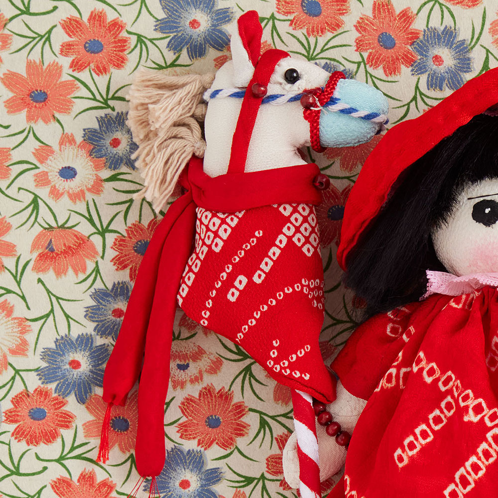 【キット作り方つき】【古裂】 馬の頭部に棒をつけた伝統玩具のアレンジ作品です。花器にさして飾っても。