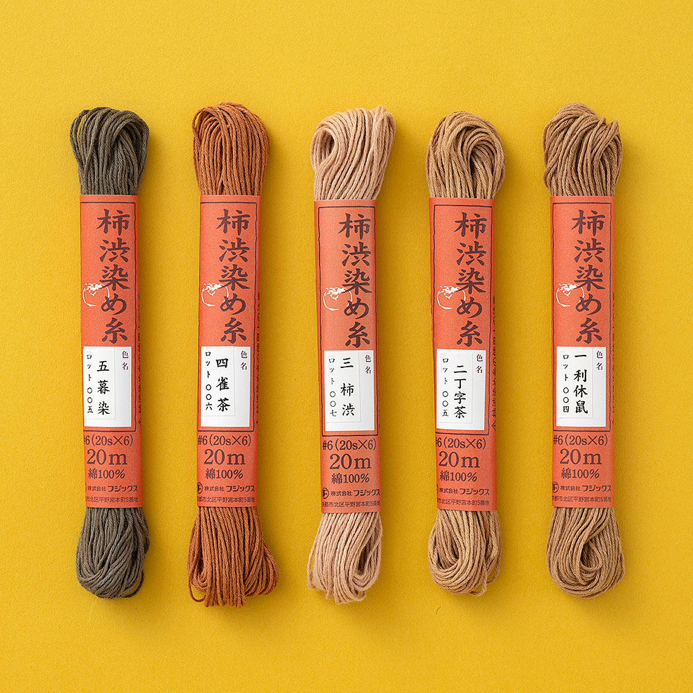 時間とともに趣のある色へ変化する、天然素材の柿渋染めの手縫い糸。刺し子作品を作っても。 ※フランス刺しゅう針3号がおすすめです。