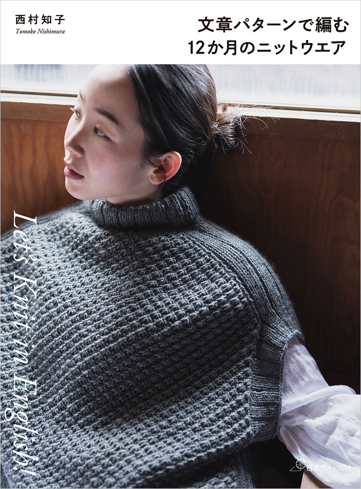 雑誌『毛糸だま』の連載「Let's Knit in English西村知子の英語で編もう」で紹介した英文パターンの技法で編んだ模様を元に様々なアイテムに展開するシリーズ第3弾。今回は12か月をテーマにしたニットウエアを紹介。10種類の模様を使った作品12点の英文パターン+日本語訳文+編み図を掲載。英文パターンならではの編み方など写真と詳しい解説で紹介。