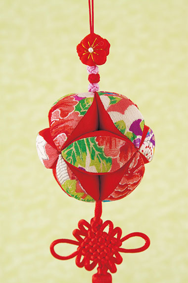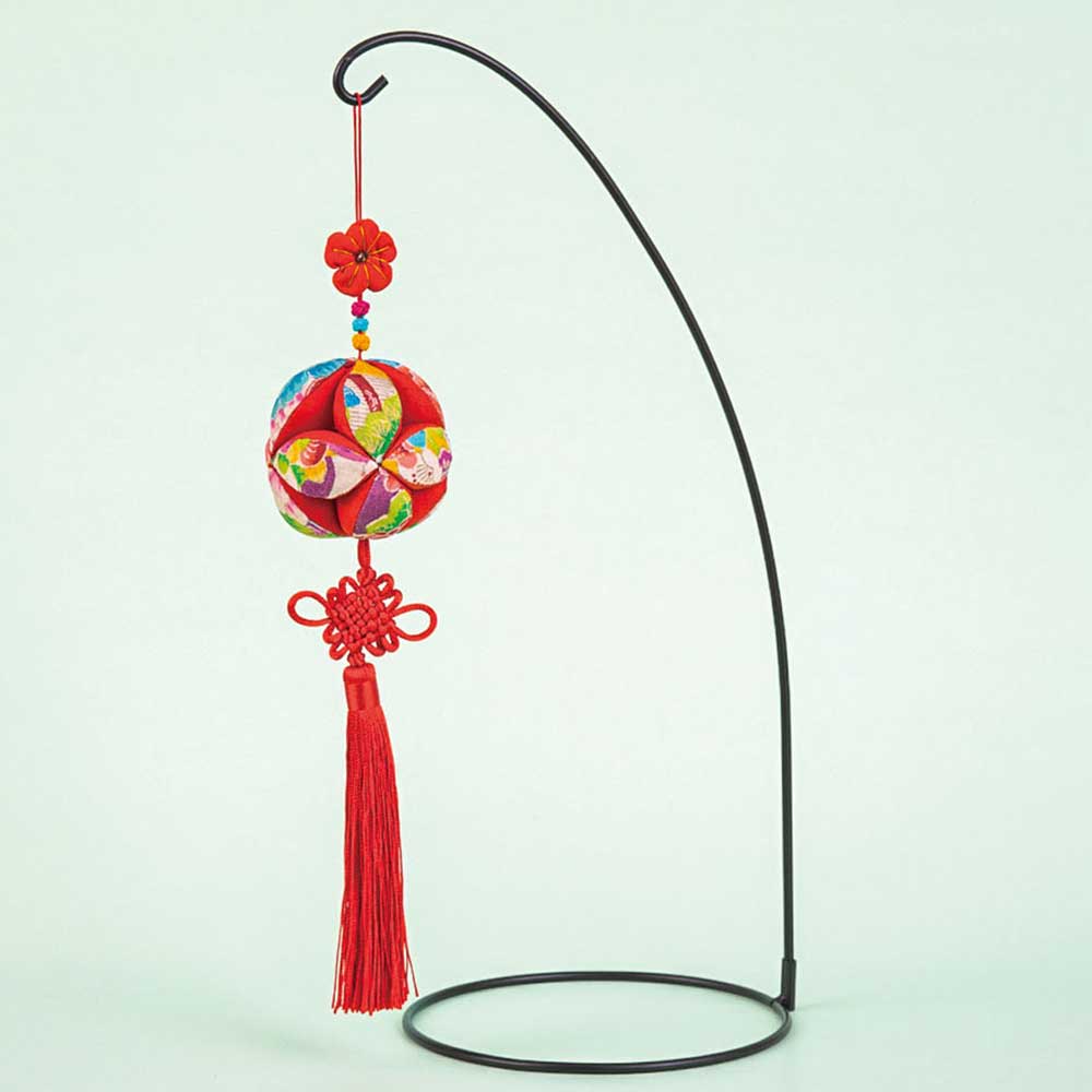 吊るし飾り=全長30㎝(吊りひも・タッセル含む)、まり=直径7cm、飾り台=幅20×高さ40cm