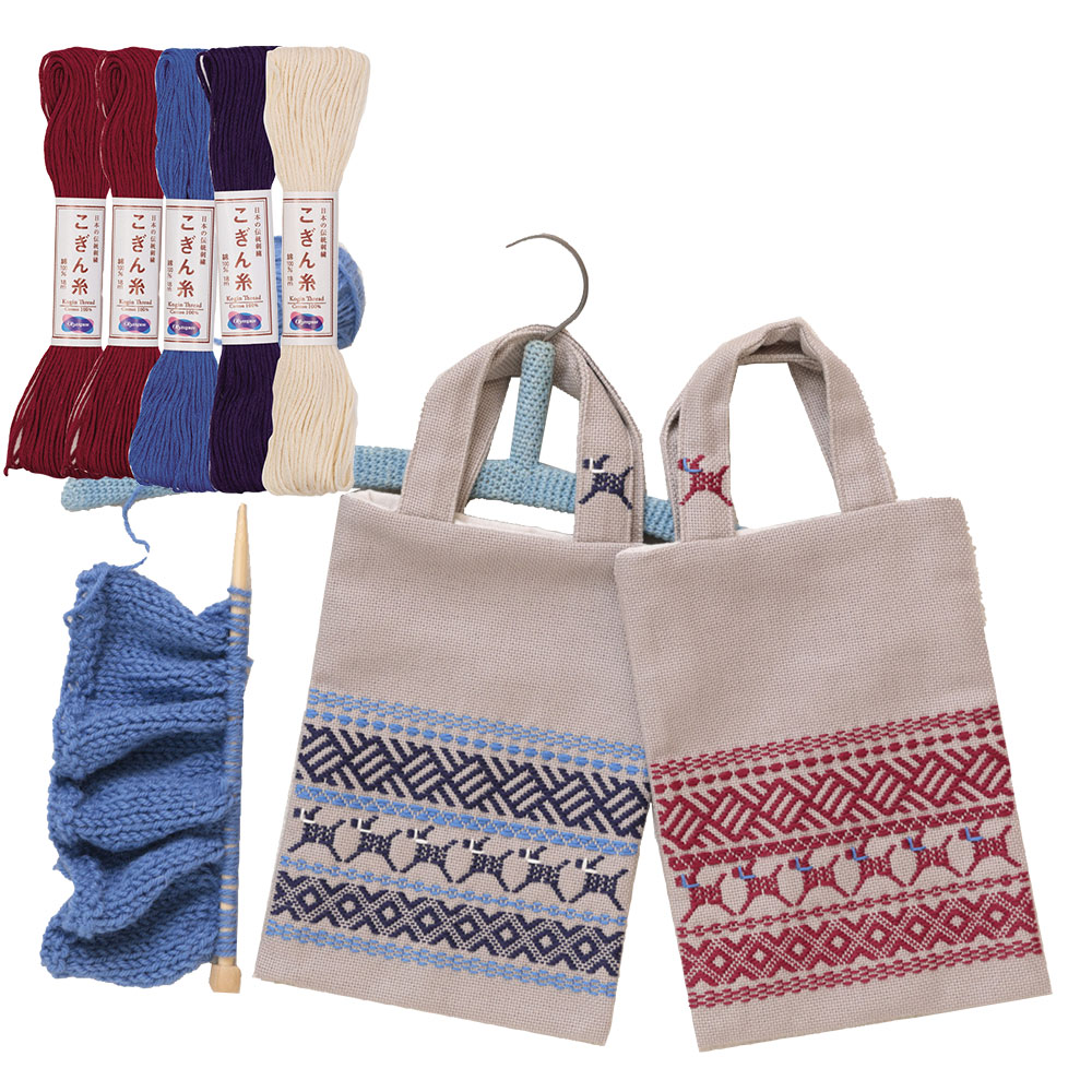 「ボーダー柄のミニバッグ」こぎん糸セット