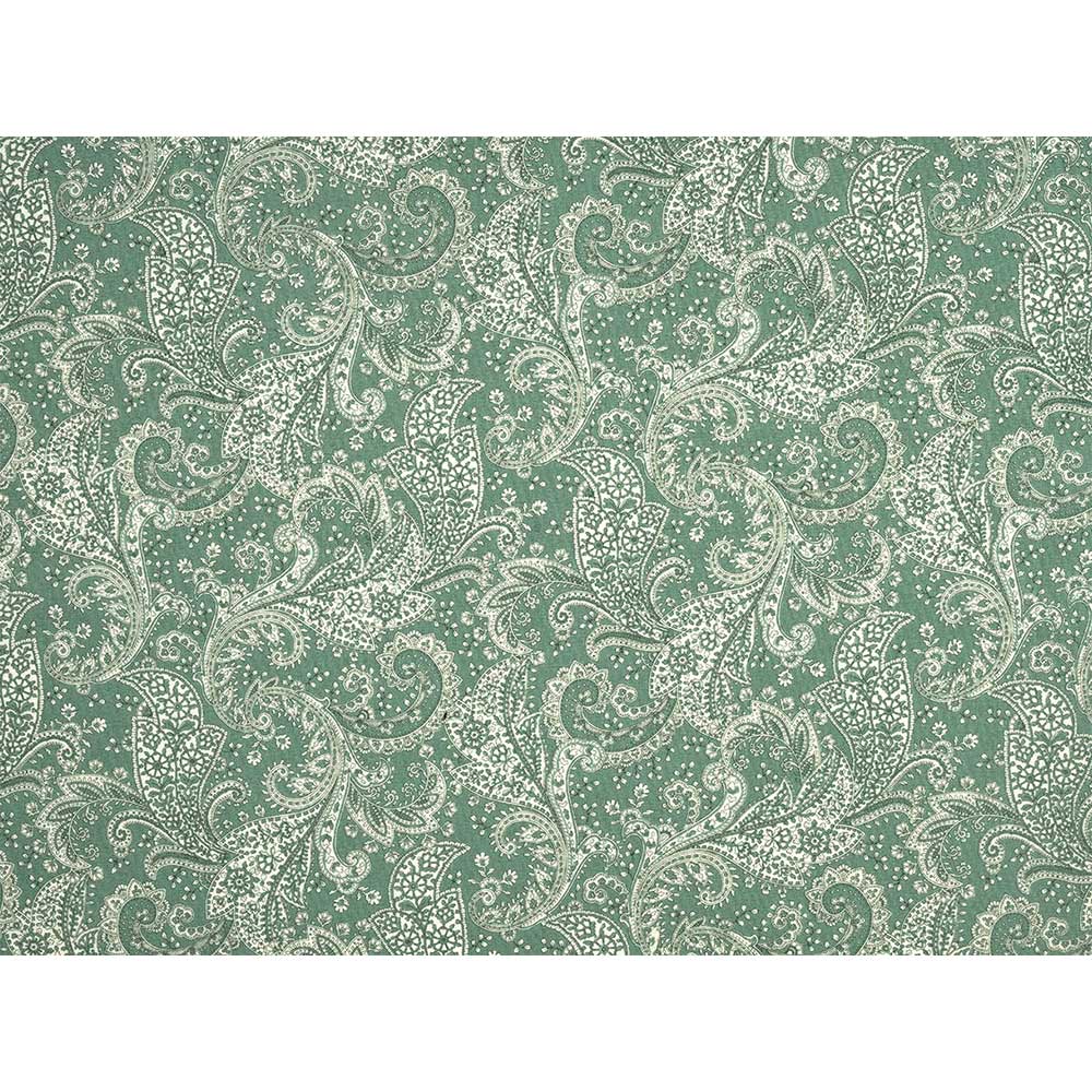 [ローン]薄手のローン地。グリーンにペイズリー模様を描いた、落ち着いた雰囲気のプリントです。ピースワークやブラウスなどにも。