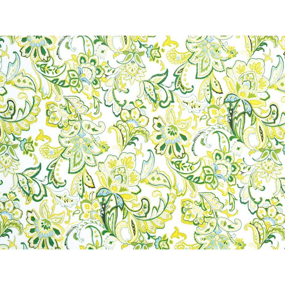[ローン]薄手のローン地に、明るいグリーンのトーンでフラワーモチーフを描いた爽やかなプリントです。インテリアやワンピースなどにも。