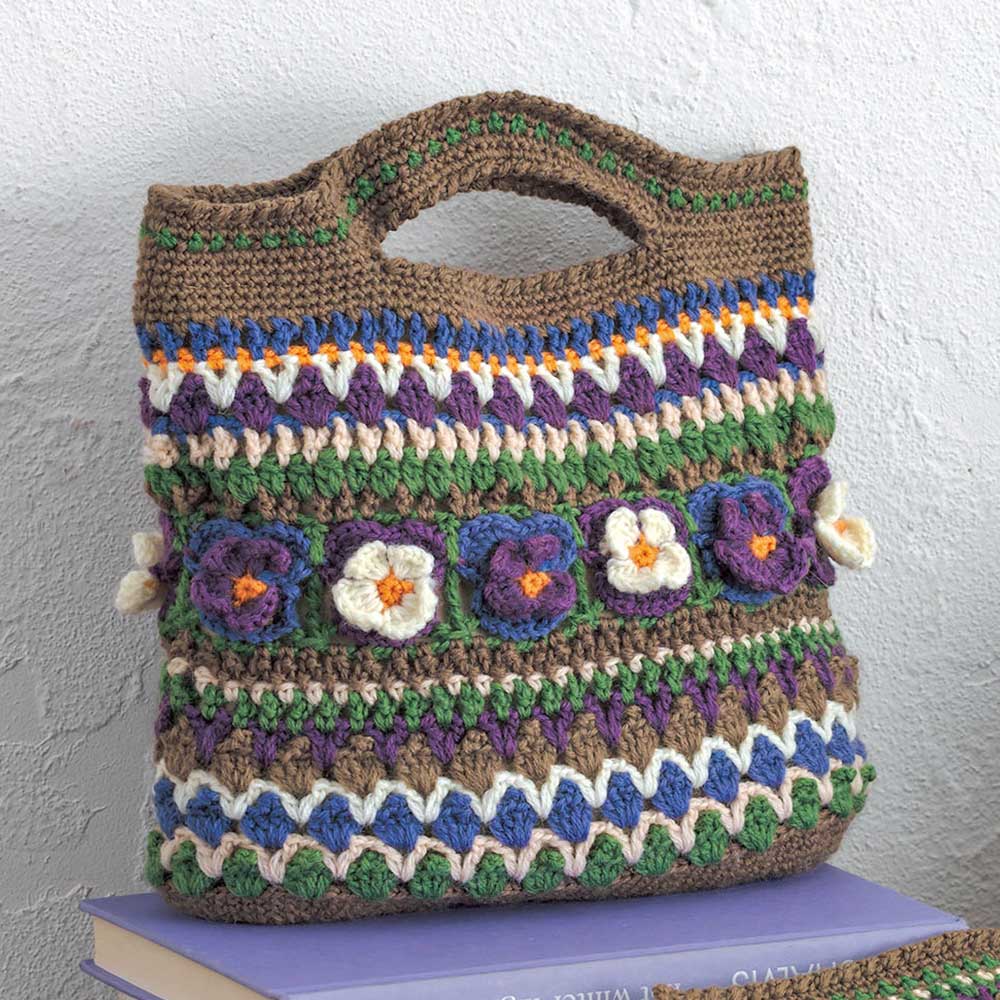 【キット作り方つき】大人気のビオラのモチーフを編みつなぎ、ボーダー模様と合わせて仕上げるバッグと、同シリーズのブランケットです。バッグは中袋つきで伸びにくい仕立て。ブランケットはひざ掛けにもなるサイズ。どちらも中級以上の方にお勧めします。