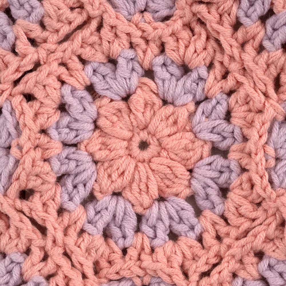 【キット作り方つき】人気のお花モチーフつなぎのワンハンドルの折りたたみ傘ケース。ピーチとライラックのやさしい色合いが大人かわいく、持つだけで気持ちがウキウキするデザインです。編みながらモチーフをつなげていくので、仕上げも簡単&すっきり。ペットボトルカバーとしても使えます。中級。