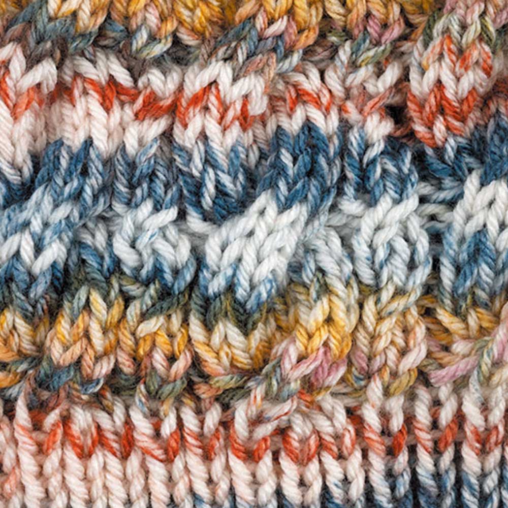 【キット作り方つき】極太タイプでザクザクとテンポよく楽しく編める、カジュアルな色合いが魅力の帽子です。自然なグラデーションが、シンプルな編み地も表情豊かにし、着こなしに程よいアクセントを添えてくれます。なわ編み模様がデザインのポイントになっており、トレンドに左右されず長く愛用できます。中級。