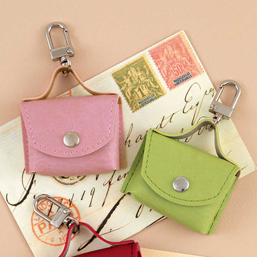 【完成品】小銭や鍵・薬などを入れられる、人気の手のひらサイズバッグ。カニカンで好きな物につけられます。パステル調とシック系、各2色ずつのセットを2種ご用意しました。