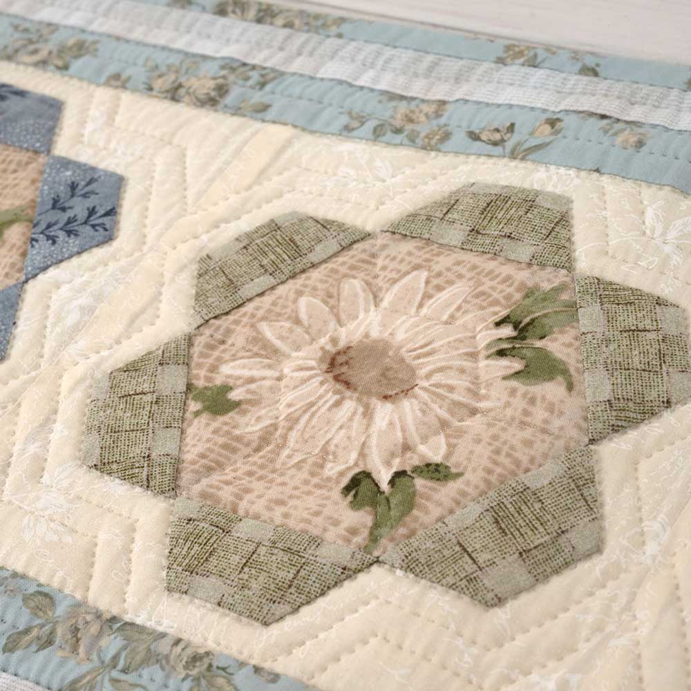【キット作り方つき】優しい色合いのテーブルセンターと、コースター5枚が作れます。ダイニングやリビングに、春めく気分を運んでくれそうです。