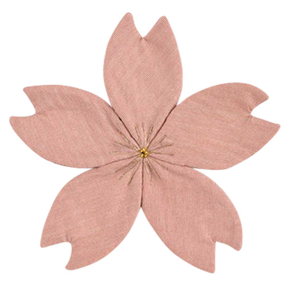 【キット作り方つき】平面のパーツを折り畳んで作るボディーに丸い顔を縫いつける、簡単仕立てのひな飾り です。桜形の敷布がポイント。気軽に作って季節感を楽しめます。髪と顔は刺しゅうで作り、敷布は5弁の花びらを合わせて作ります。