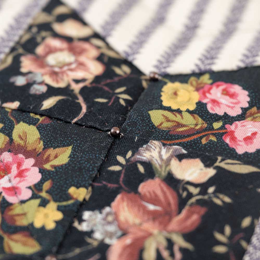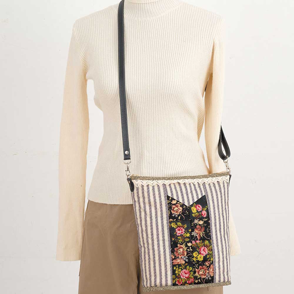 【キット作り方つき】おしゃれなストライプ柄と花柄を組み合わせたシンプルでスタイリッシュなデザイン。サイズも丁度よくお洋服にも合わせやすい。反対側同じデザイン。