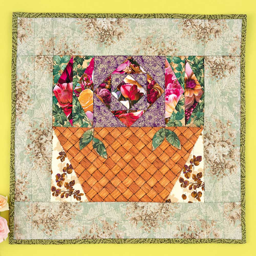 【キット作り方つき】花柄やリーフ柄を活かし、鉢植えをイメージしたピースワークのタぺストリー。お部屋が明るくなります。