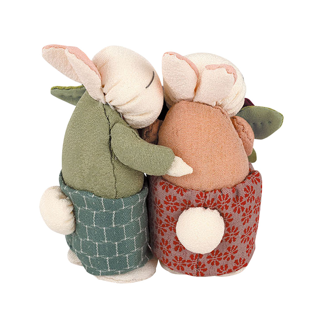 【古裂】【キット作り方つき】ハート形のようにも見える2色のビオラをメインにした、小さなウサギペアの置き飾り。花言葉“誠実”を思わせる様子を、微笑ましく表現しました。