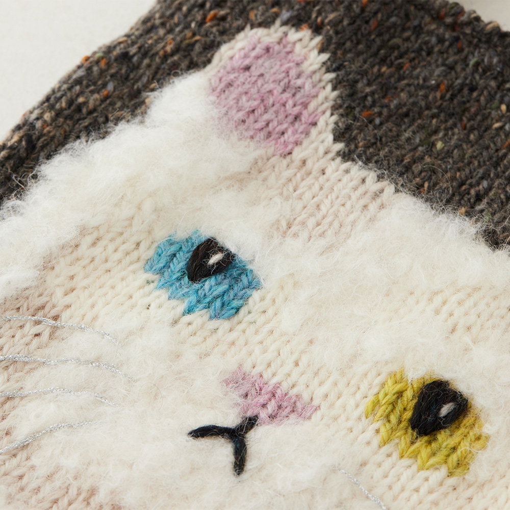 棒針編み&かぎ針編みの基礎、編み込み模様の編み方、糸始末の仕方、ネコのふわふわした毛を表現する方法、バッグの仕立て方など収録されています。