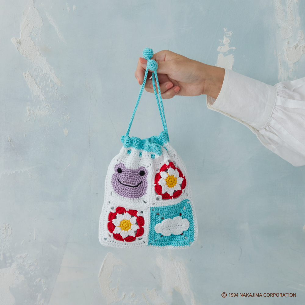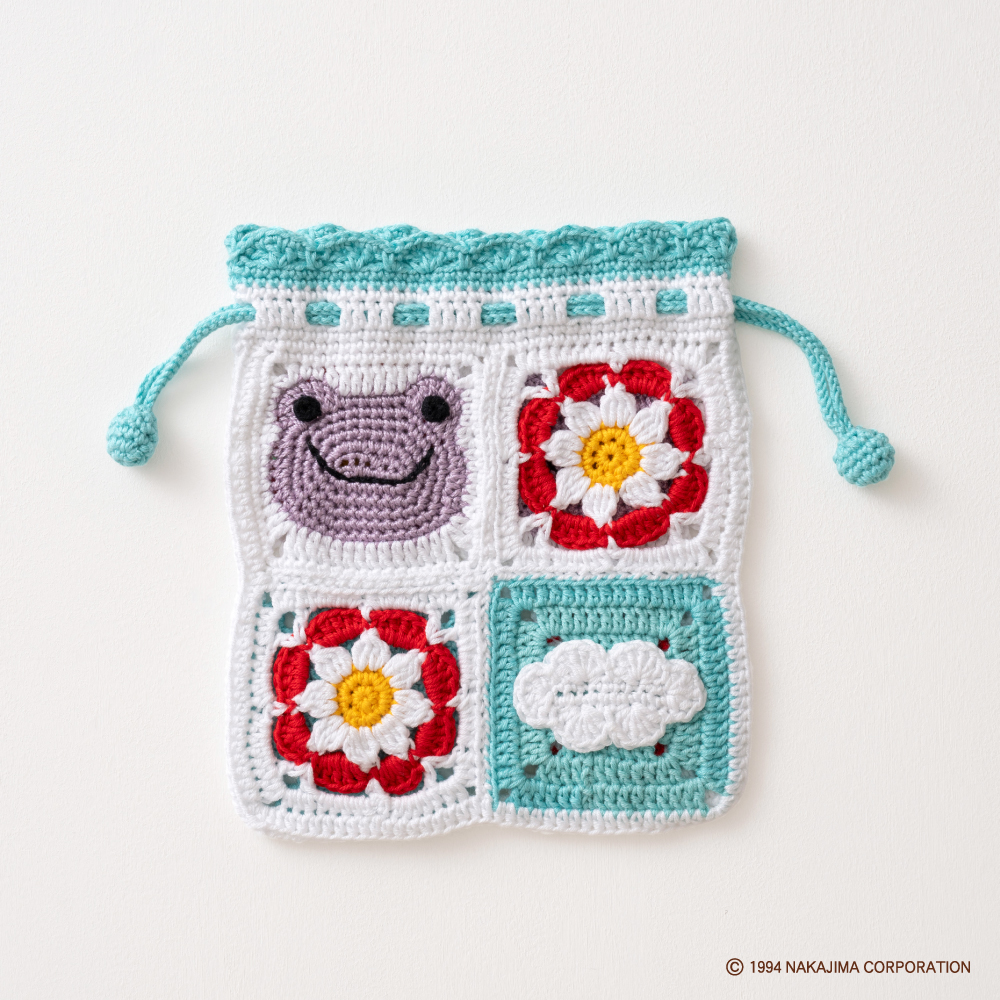 さらに、編んだモチーフを使って、巾着が作れます♪