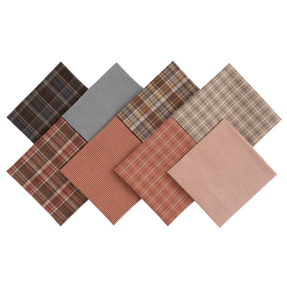 マドラスチェック風の大きめのチェックと、ベーシックなギンガムチェックなどを組み合わせた先染めのカットクロスセットです。小さめサイズでお届けします。