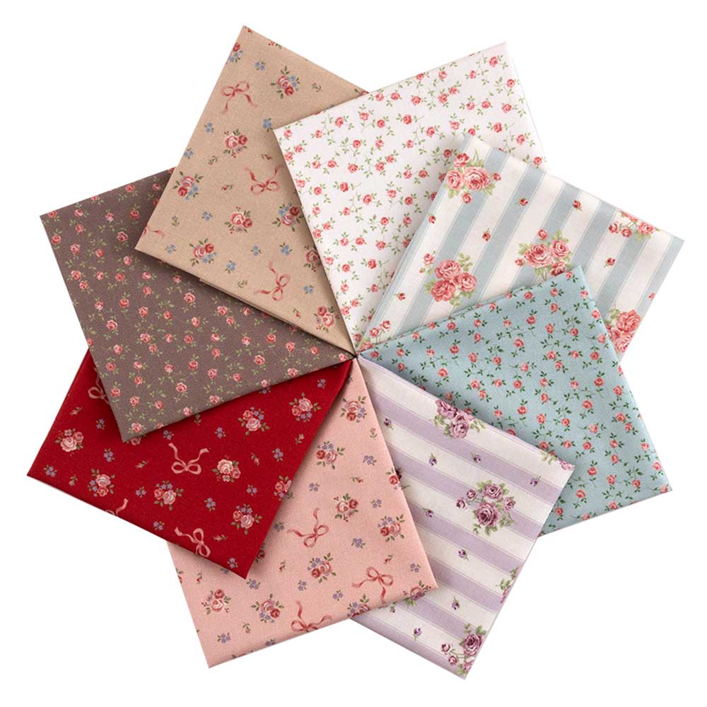 バラ柄をメインにしたロマンティックな花柄コレクション。使いやすい中柄、小柄のエレガントな色合いのカットクロスセットです。
