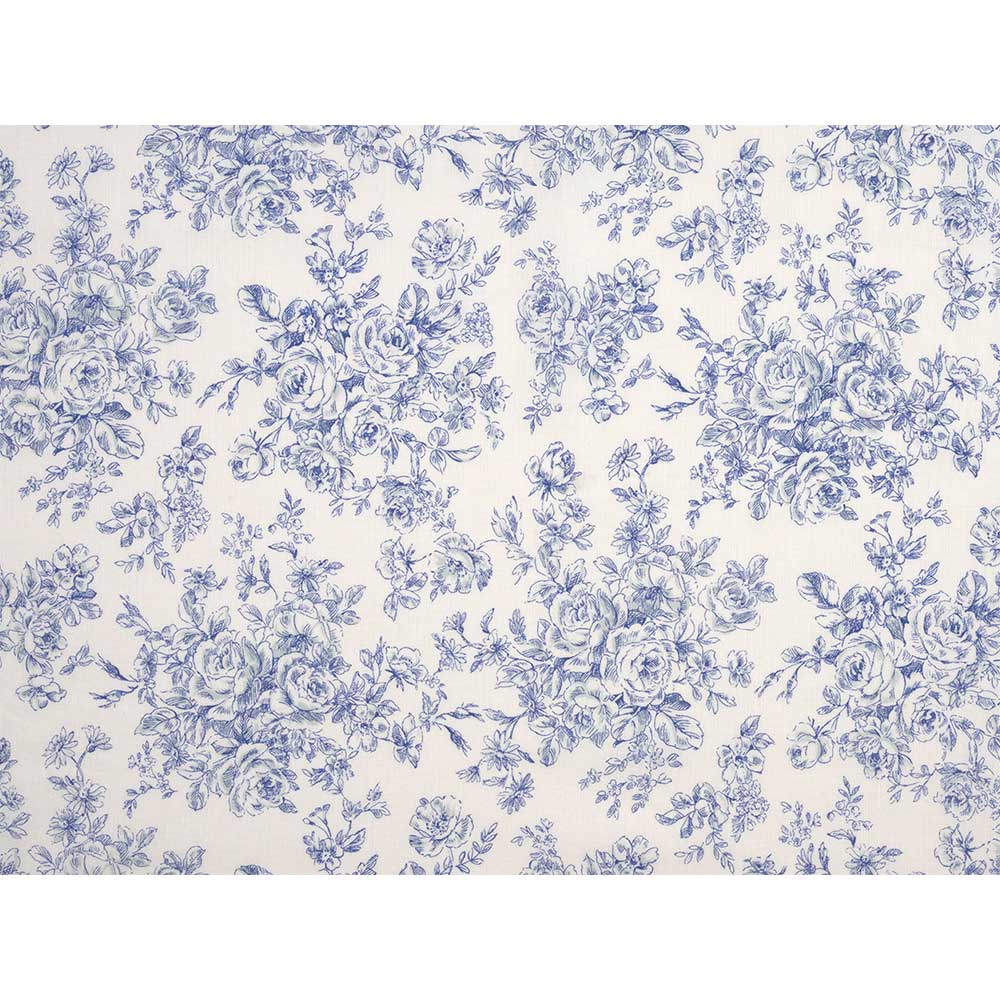 [ローン]薄手のローン地に、ブルーの線で、繊細にフラワーモチーフを描いた涼し気なプリントです。