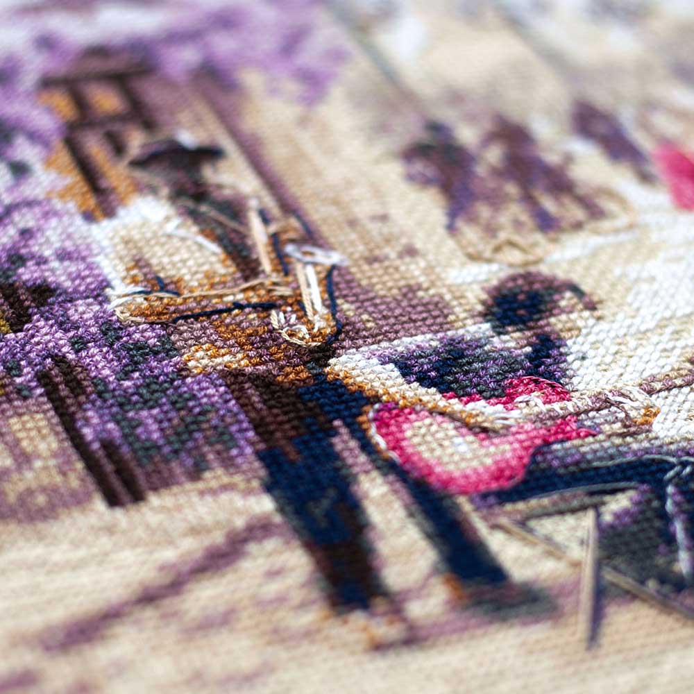 【キット作り方つき】ストリートミュージシャンがいるヨーロッパの街並みを描いた、00な雰囲気を感じさせるクロスステッチ作品です。上級の方向け。ラトビア・Magic needle社製(マジックニードル)。