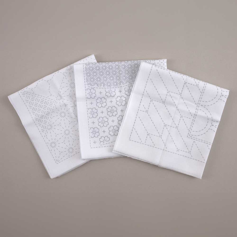 刺し子の花ふきん・布パック 3種セット[合わせ模様]