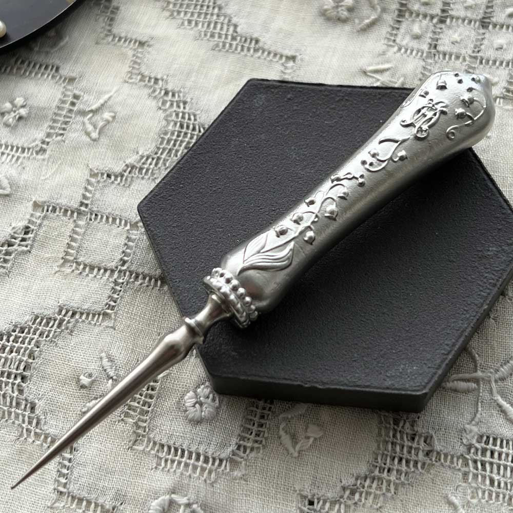 【完成品】雑貨クリエーターのAnanOとすず製品のトップメーカー「能作」、手芸メーカーのクロバーがコラボして生まれたコレクション。目打の先を削らずに、生地や指を傷つけづらいなめらかな形状に仕上げました。コンパクトで手におさまるようなサイズ感です。すずらんの花のデザインにもアレンジを加え、今までとは違った魅力が出ています。ポルトボヌールとは「幸せが訪れる」という意味。
