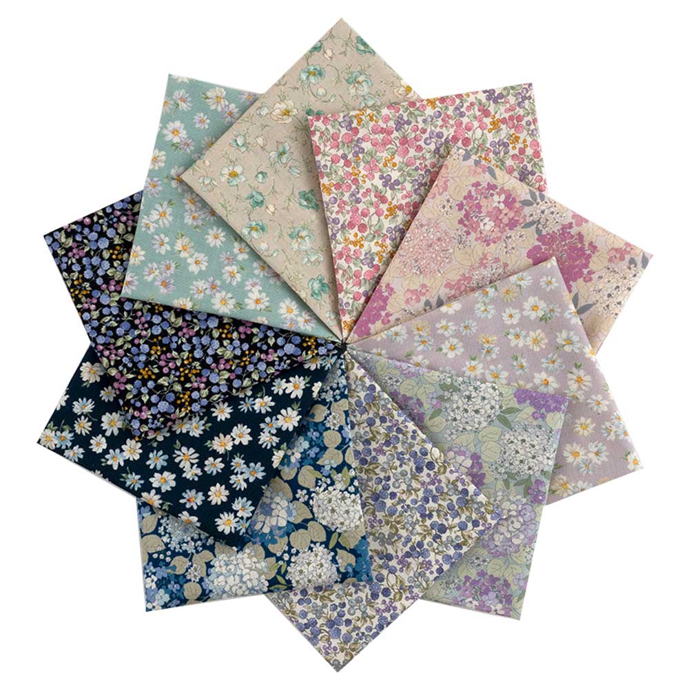 ピンクやパープル、ブルーなど可愛らしい小柄・中柄のフラワープリントのセット。ピースワークや小物作りなどに。