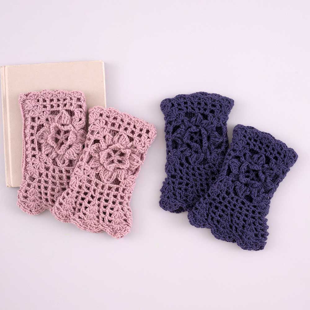 【キット作り方つき】花モチーフが手元を彩る、エレガントなハンドウォーマー。棒針編みとかぎ針編みを組み合わせて仕上げることで、 やわらかな編地と繊細なレース模様に。「花モチーフマフラー」とお揃いにも。糸はエクストラファインメリノを使用した高品質の合太糸。撚りがしっかりしているので、模様編みやメリヤス編み、地模様もきれいに仕上がります。中級の方へ。