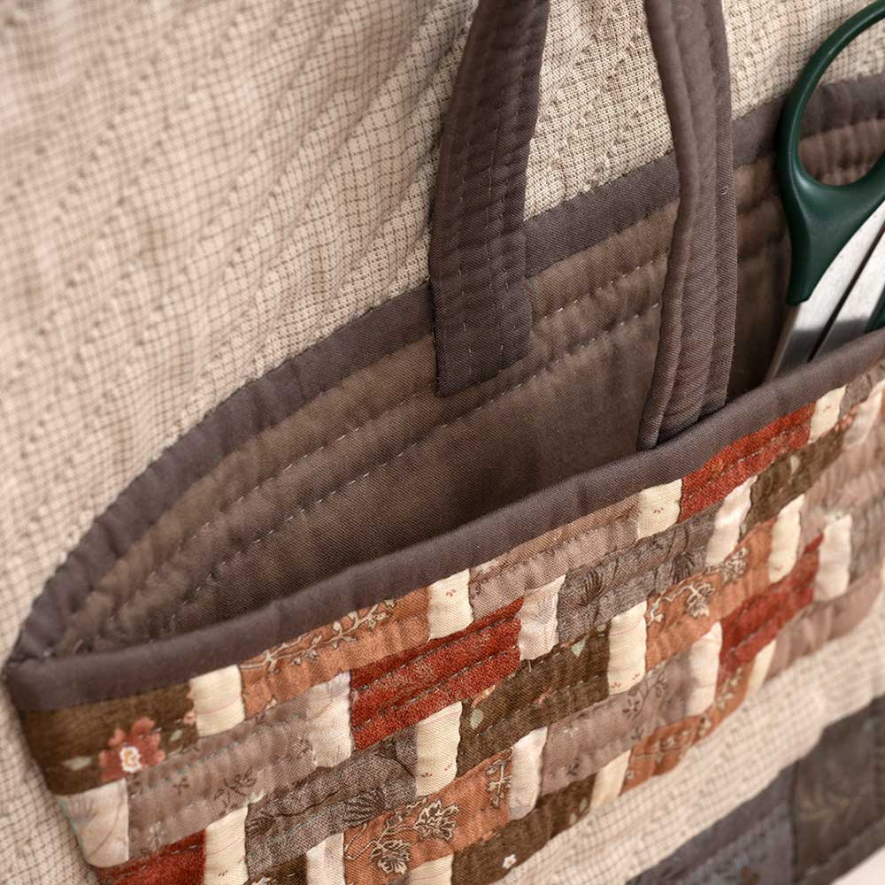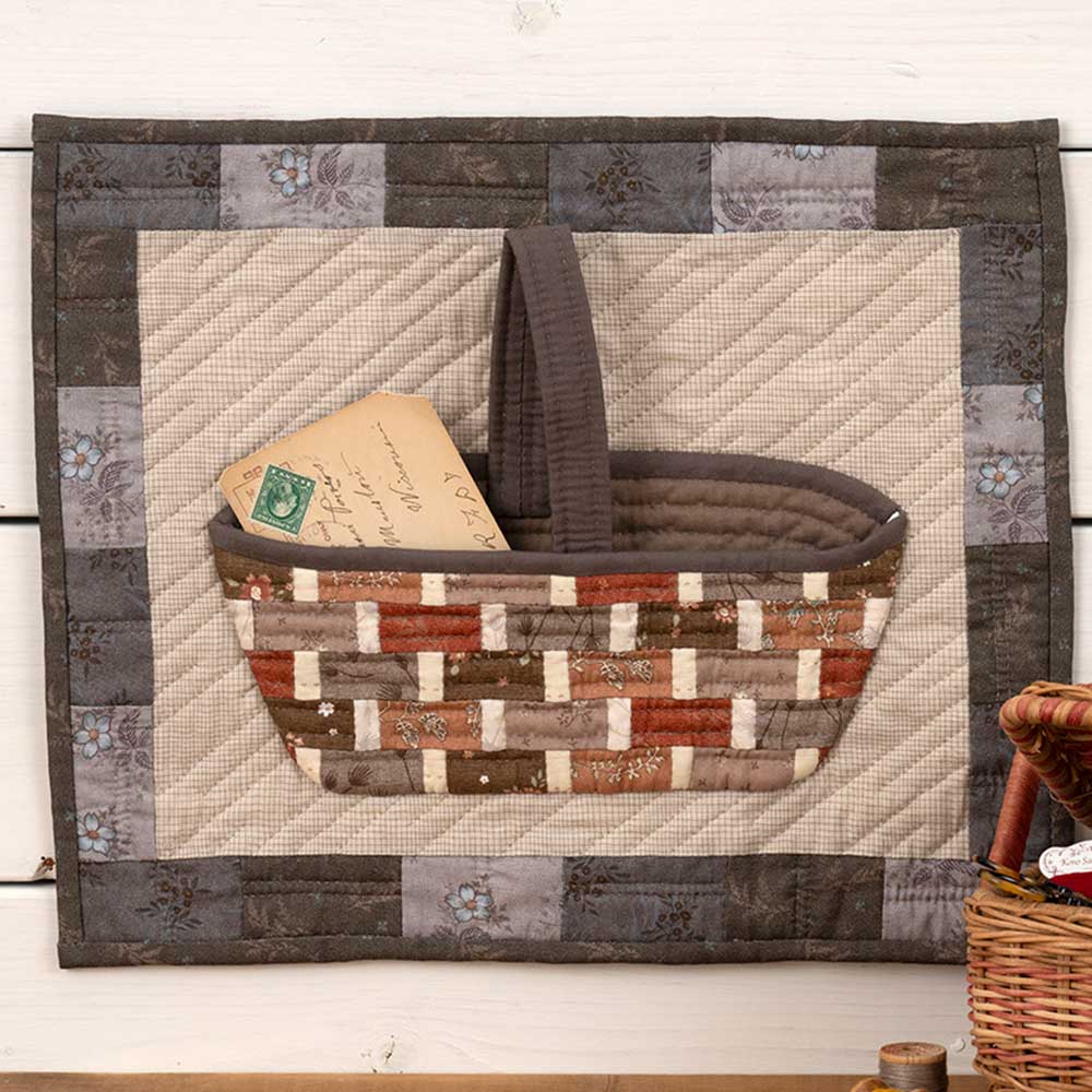 【キット作り方つき】ヨーロッパ風の横長バスケットをイメージしたアップリケ部分に、実際に小物が収納できるウォールポケット。インテリア としてもおしゃれなデザインです。