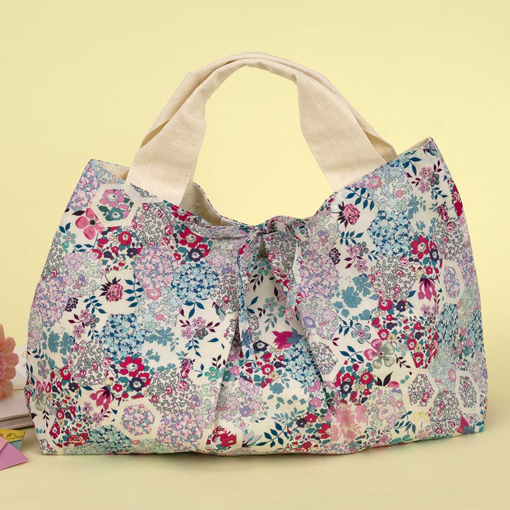 【キット作り方つき】中央にあるタックとリボンのデザインが特徴的なバッグ。裏地付きでしっかりとしていて、ちょっとしたお出かけにも最適。