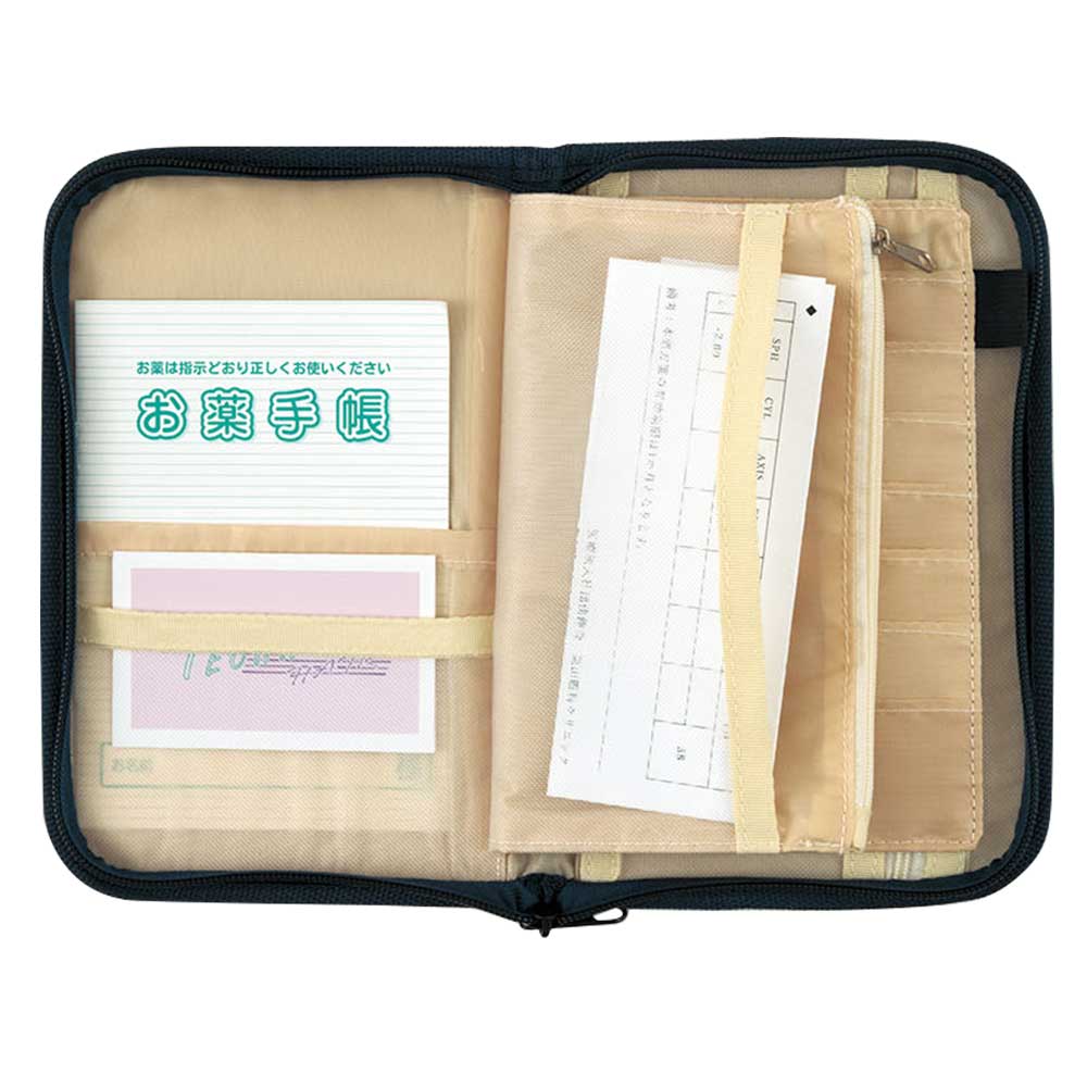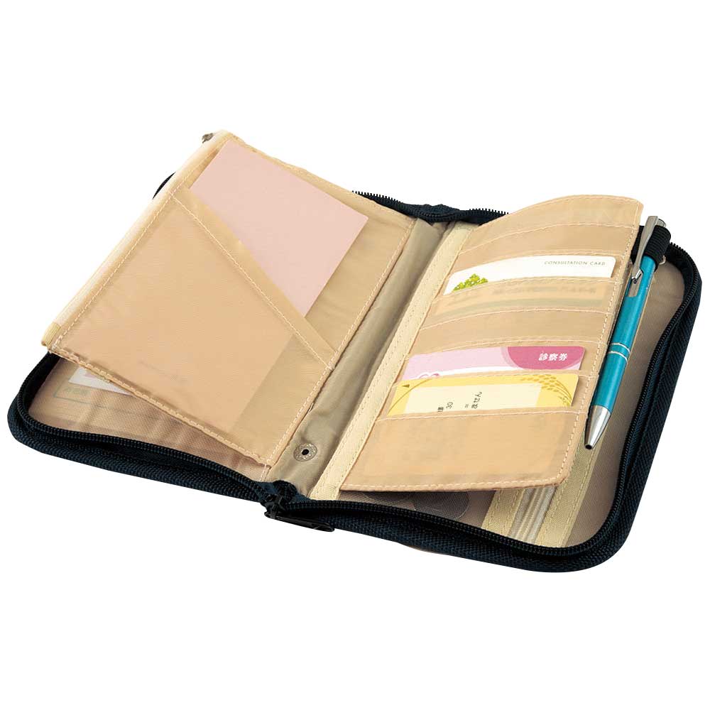 【完成品】通院の必需品をまとめておける便利なポーチに、ニューカラーが登場。通帳管理やこまごました小物の整理にもぴったりです。内側はファスナーつきポケットやメッシュポケット、カード収納スペースにペンホルダーなど細かく分類できる作りです。