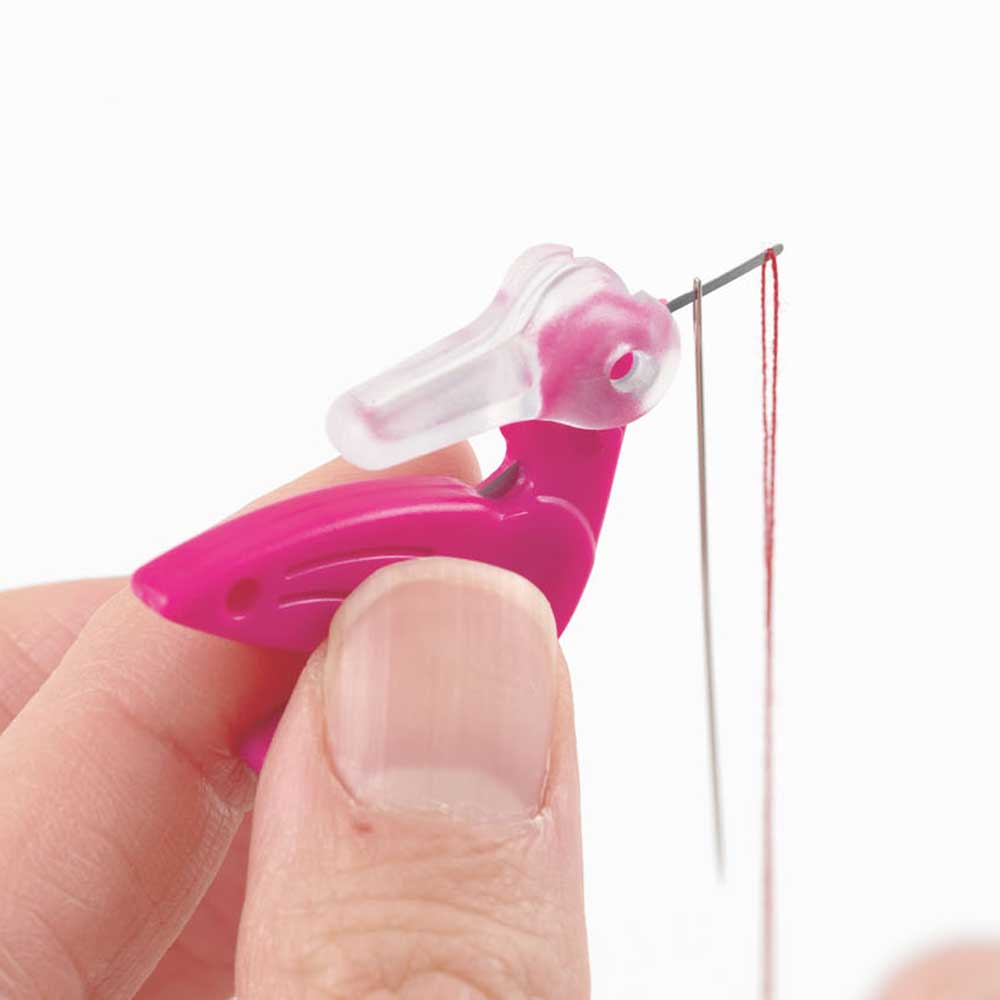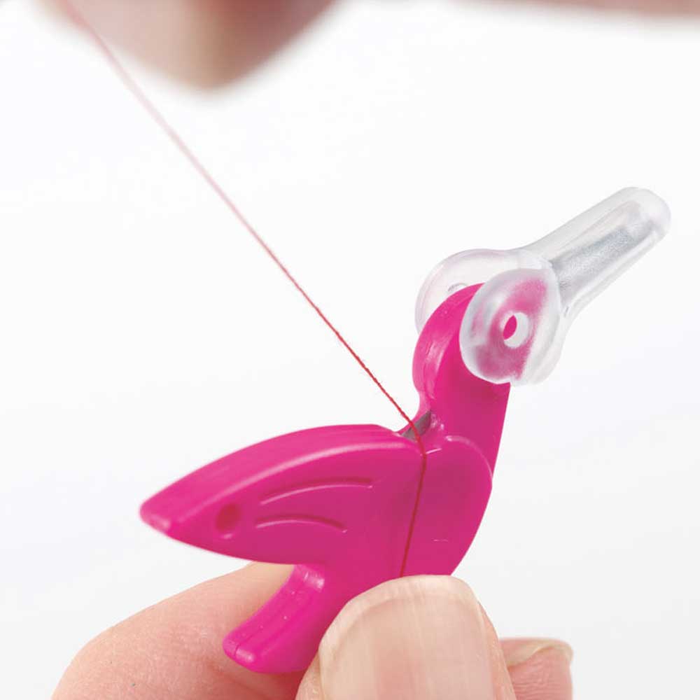 ソーイングセットに入れておくだけで楽しい、鳥の形の可愛いスレダー。くちばしの金具が糸通し、首の後ろは糸切りカッターとして使えます。携帯にも便利。