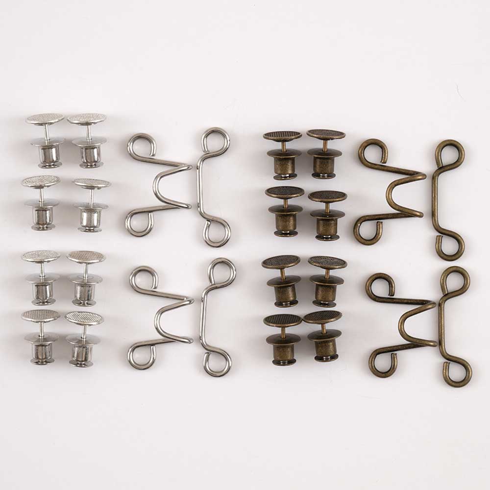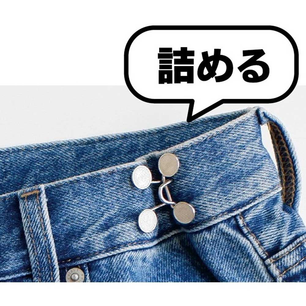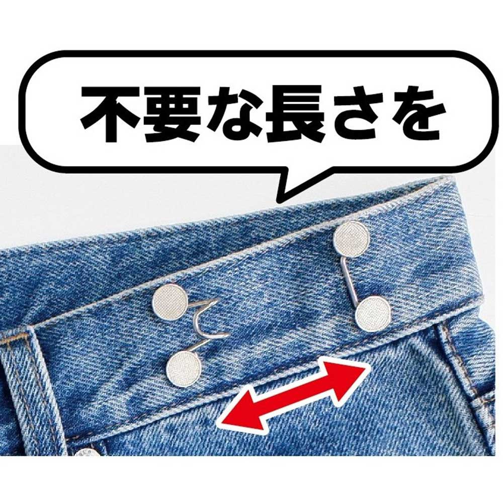 大きめやワイドサイズのボトムスを、糸針を使わず簡単に詰めて履けるフック。シルバーとアンティークゴールドの2色を各2組の4組セットでお届けします。