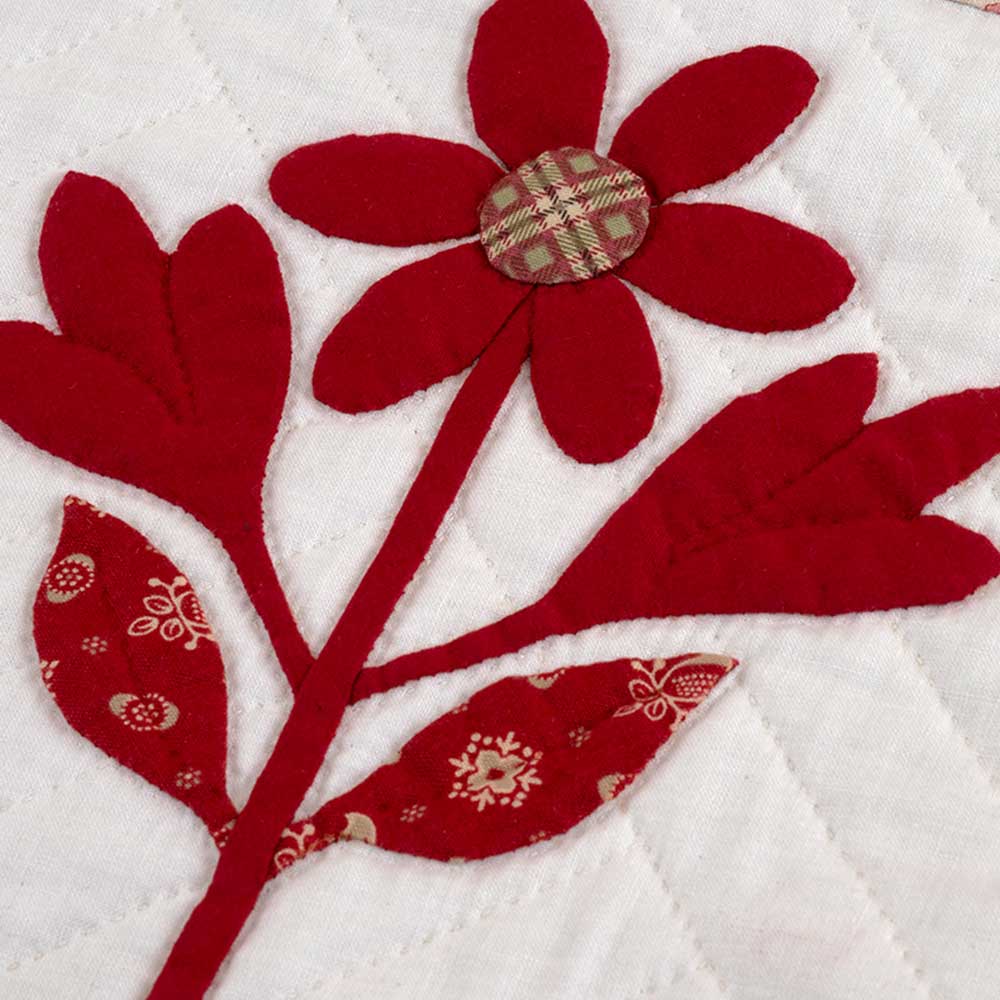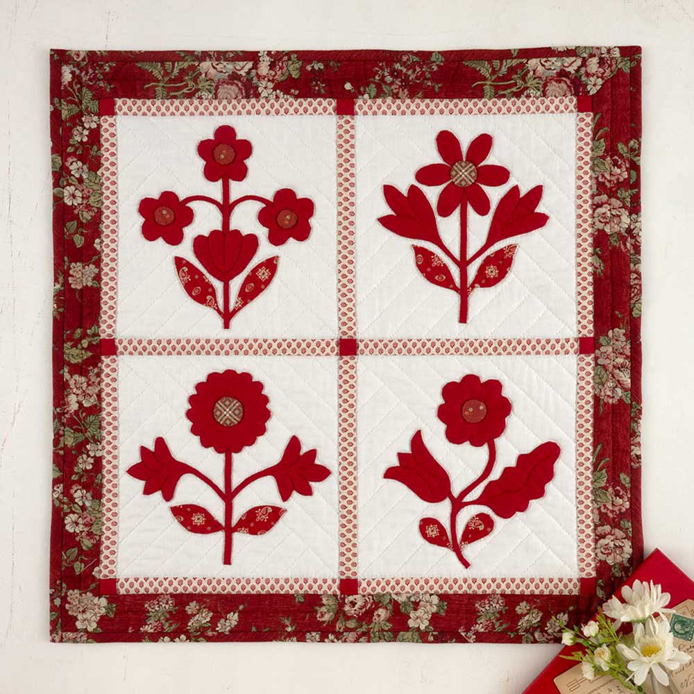 【キット作り方つき】ボルチモア風の可愛い花モチーフをアップリケ。シックな色合いで上品にまとめたタペストリーです。