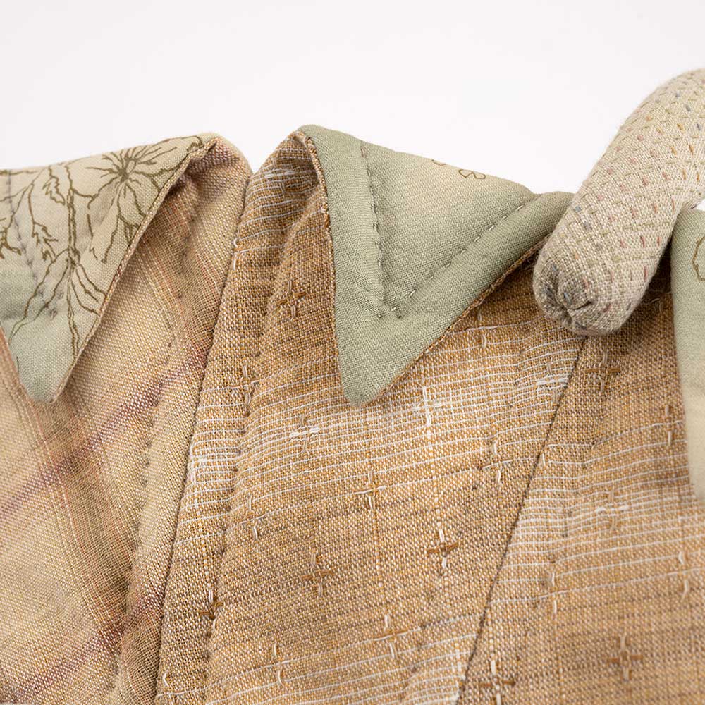 【キット作り方つき】縁部分を外側に折ったデザインがおしゃれ。裁縫用具をまとめたり菓子袋などを入れたり、ちょっと片づけたい時にも便利なバスケット型の収納アイテムです。側面はパーツごとに仕立てて巻きかがりでつなぐ作り。内底にはバラ柄のプリント布を使います。