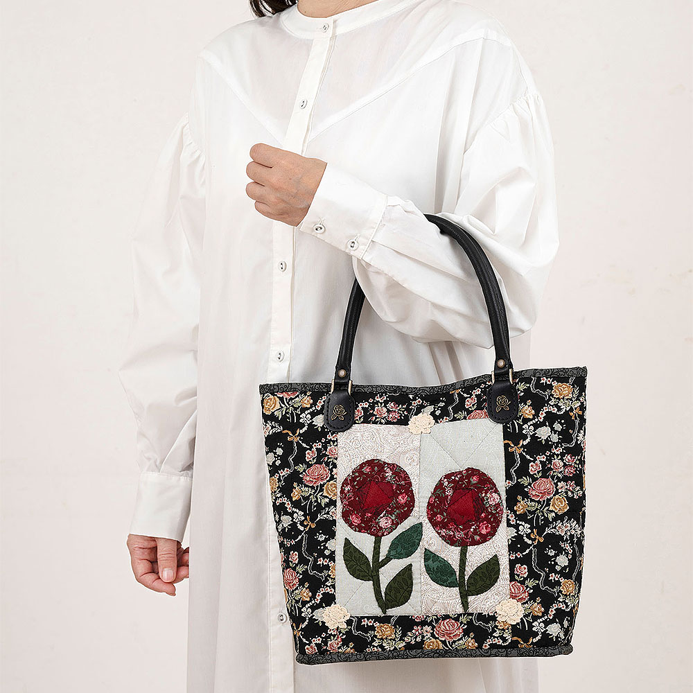 バラモチーフアップリケのトートバッグ