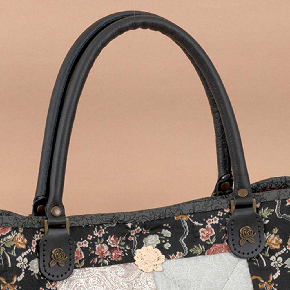 【別売り】本体に縫いつける部分のバラパーツをポイントにしたキルトショップMixJamオリジナルの人気のバラパーツがついた本革持ち手です。