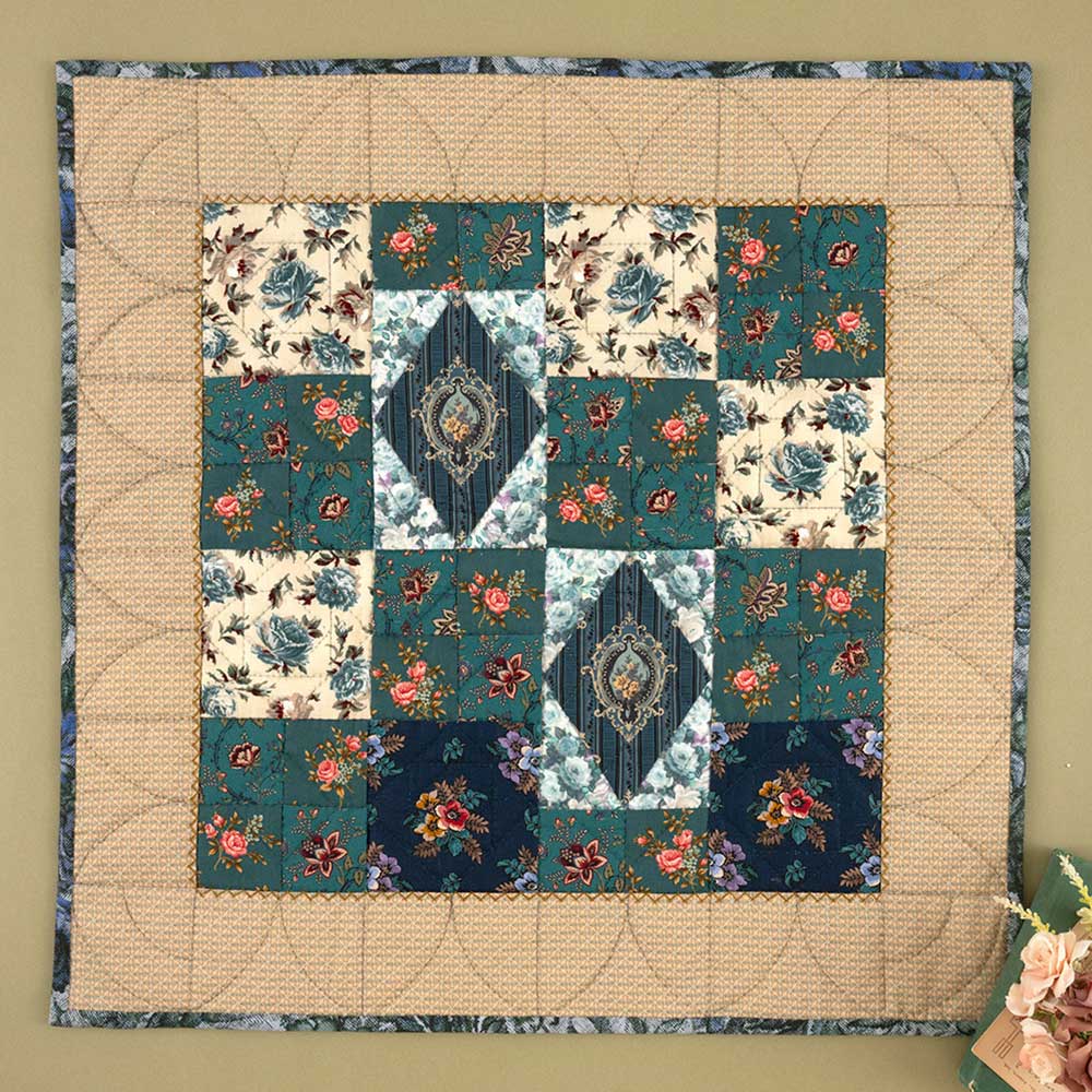 【キット作り方つき】クラシカルな雰囲気が気軽に楽しめそう。プリント布柄を生かし、大きめのピースで仕立てるタペストリーです。