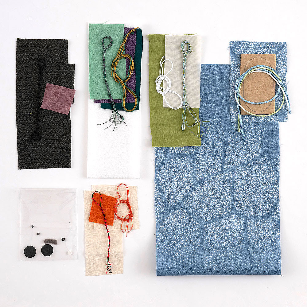 本体布(古裂)、ビーズ、コード、毛糸、厚紙、不織布、糸