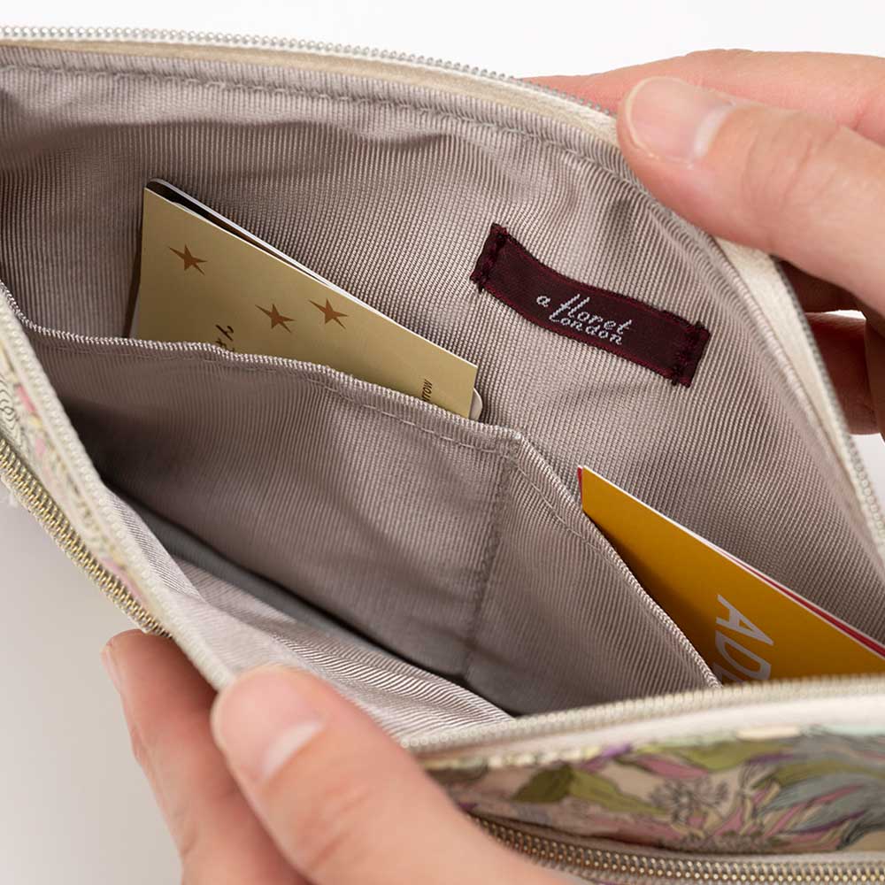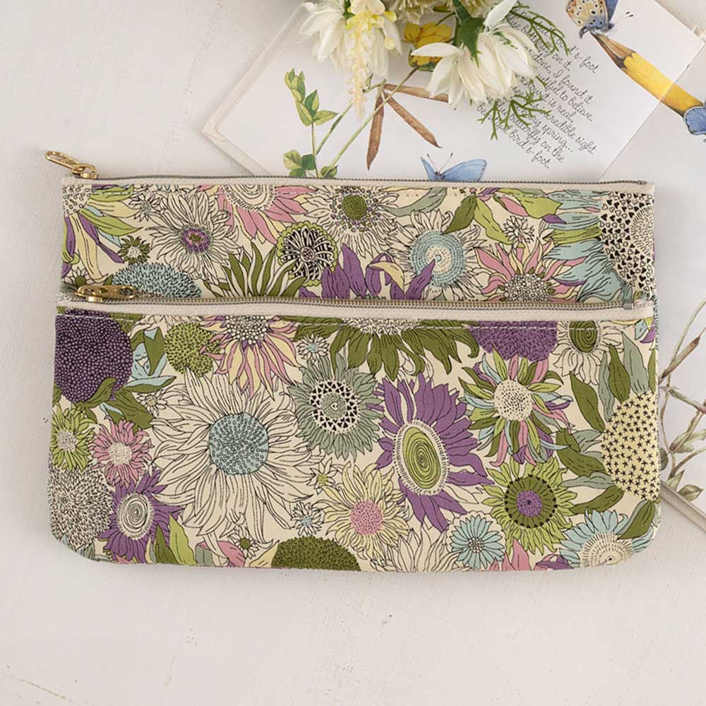 ●限定40●完成品●ファスナーつきのポケットが2つついた横長のフラットポーチです。お薬手帳や母子手帳も入るサイズです。お札もそのまま入るので、お財布代わりにも使えます。
