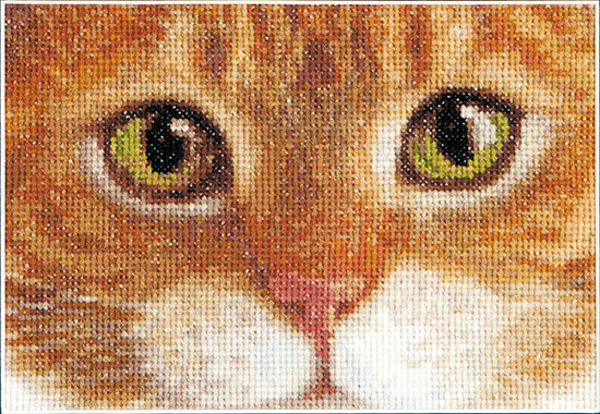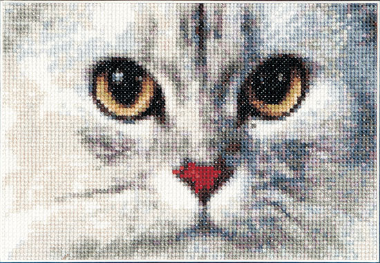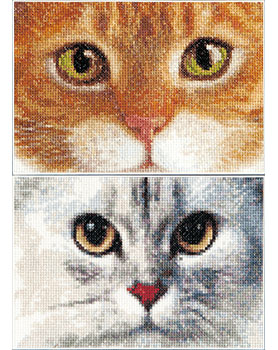 【キット作り方つき】2種類の猫の顔をデザインしたテア・グーヴェルヌールの作品。迫力のクロスステッチ作品をセットでお届け。中級の方向けです。