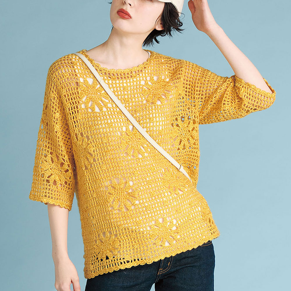 〈糸セット〉花模様の方眼編みプル