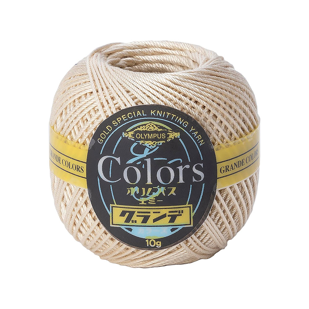 オリムパスの代表的なコットンレース糸、エミーグランデの(カラーズ)ラインナップ。綺麗な発色のコットンで、小物やポイント使いに丁度良い小巻タイプ。