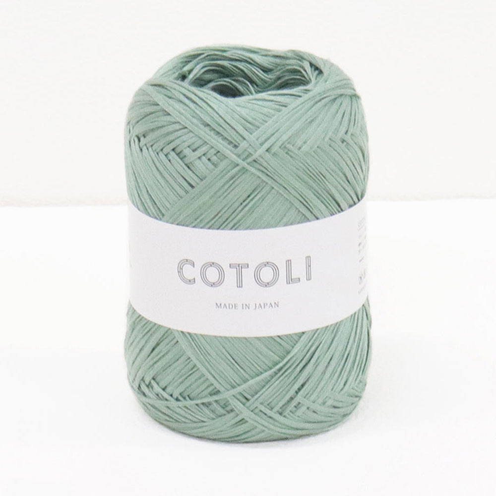 上品な光沢の美しいコットンテープ糸「COTOLI」。通常の糸と比較して毛羽立ちが少なく仕上がる「コンパクトスピン」から作られた高級コットンを使用しています。光沢感を演出するシルケット加工を施し、リリヤン機で扁平のテープ形状に仕上げています。ほどよい硬さに仕上がっているので、ウエアや小物など幅広いデザインに使えます。