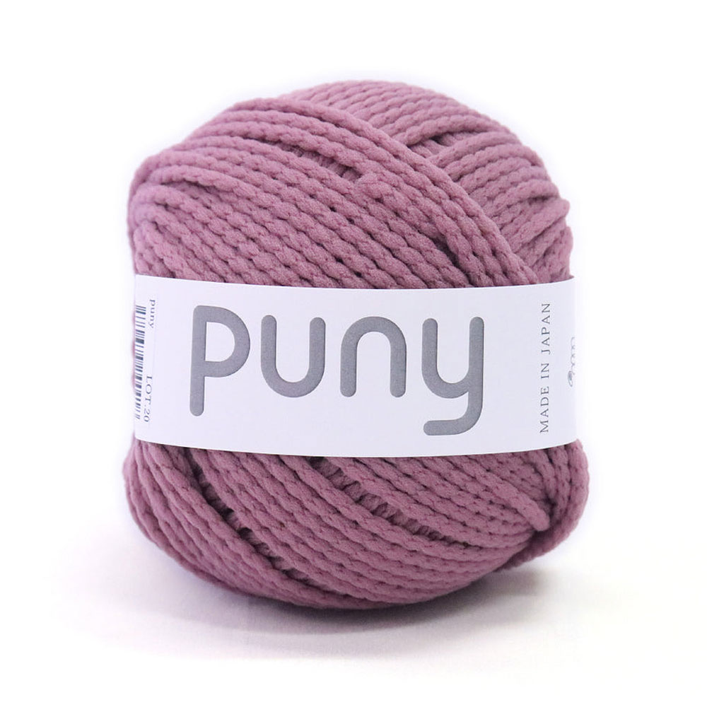 ポリエステルをリリヤン加工することで、とっても軽くて洗える毛糸ができました。マスク紐の代用になるような伸縮性がありますが、編むとキュッとなります。とても軽く編みやすいので初心者の方にお勧めです。また、速乾性があるのでコースターや手作りたわしにもOK、バッグやインテリア小物など様々な作品作りにおすすめです。 手芸糸は通常、大量の水を使って染色していますが、Punyは水を使わずに色を付けています。1本の糸になる前の〈原料ワタ〉段階で直接、色の顔料を練り込むことで色を付け色鮮やかなPunyが作られます。そのため染色工程におけるエネルギー消費、使用する水と二酸化炭素の排出量を削減できるとっても環境にもやさしい手芸糸です。
