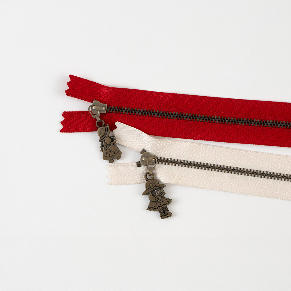 可愛いサンボンネット・スーのチャームがついた20cmファスナー8色セット。 ポーチに使いやすいサイズです。