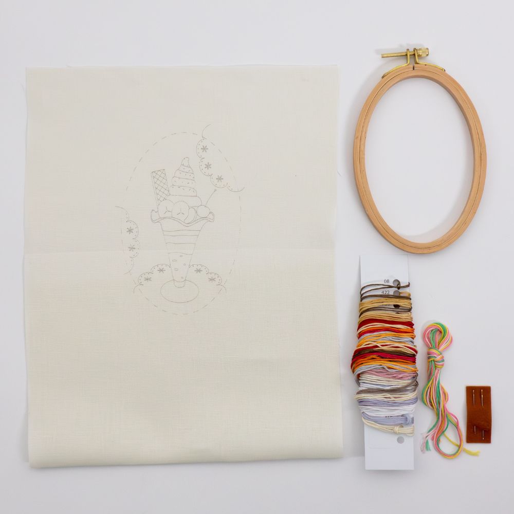 基本的なステッチを組み合わせてつくる、bitteさんデザインのスイーツ刺しゅうキットです。