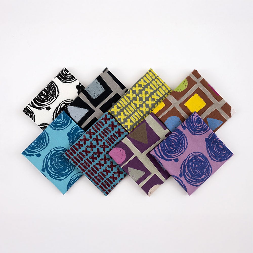 郷家啓子さんデザインの新作コレクションよりセレクト。クレヨンタッチのデザインで、カラフルでアーティスティックなセットです。