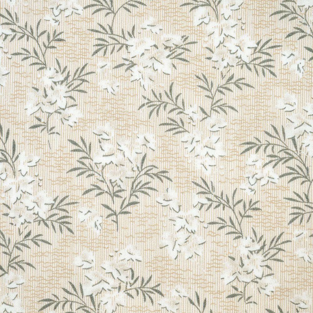 波のような地模様が入った淡いベージュ地に、グレーのトーンで草花を描きました。土台や裏布などにも。