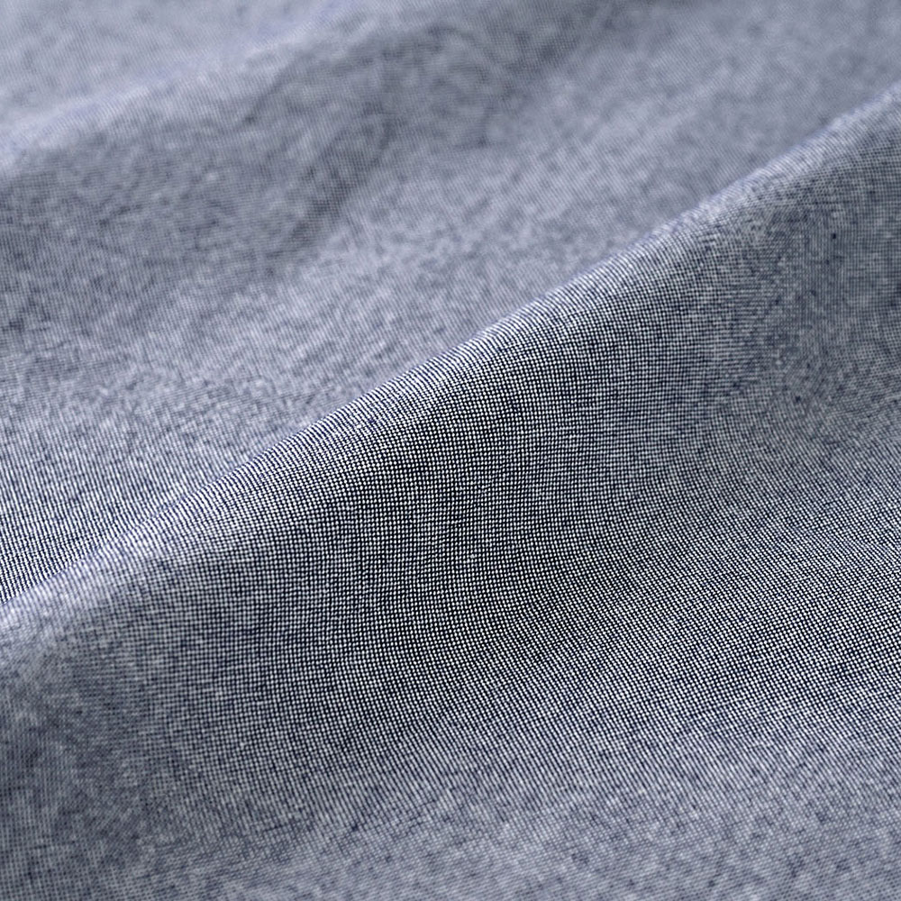 白と紺の糸で織り上げたデニム調のダンガリークロス。洗い加工も施しているので、ふっくらとした風合いで、ナチュラルなシワ感があります。シャツなどのソーイングにおすすめ。