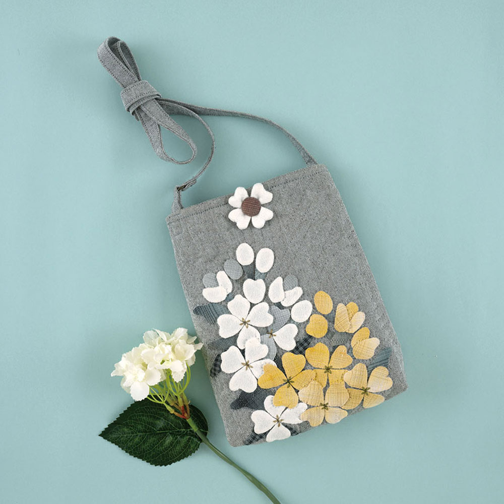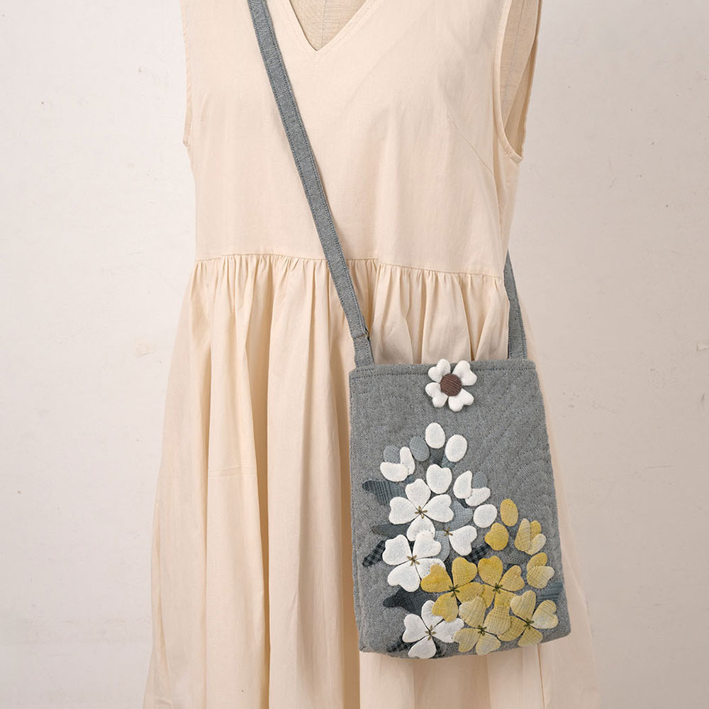 【キット作り方つき】黄色い花あしらって、軽やかなイメージに。使いやすいサイズでお出かけに重宝します。